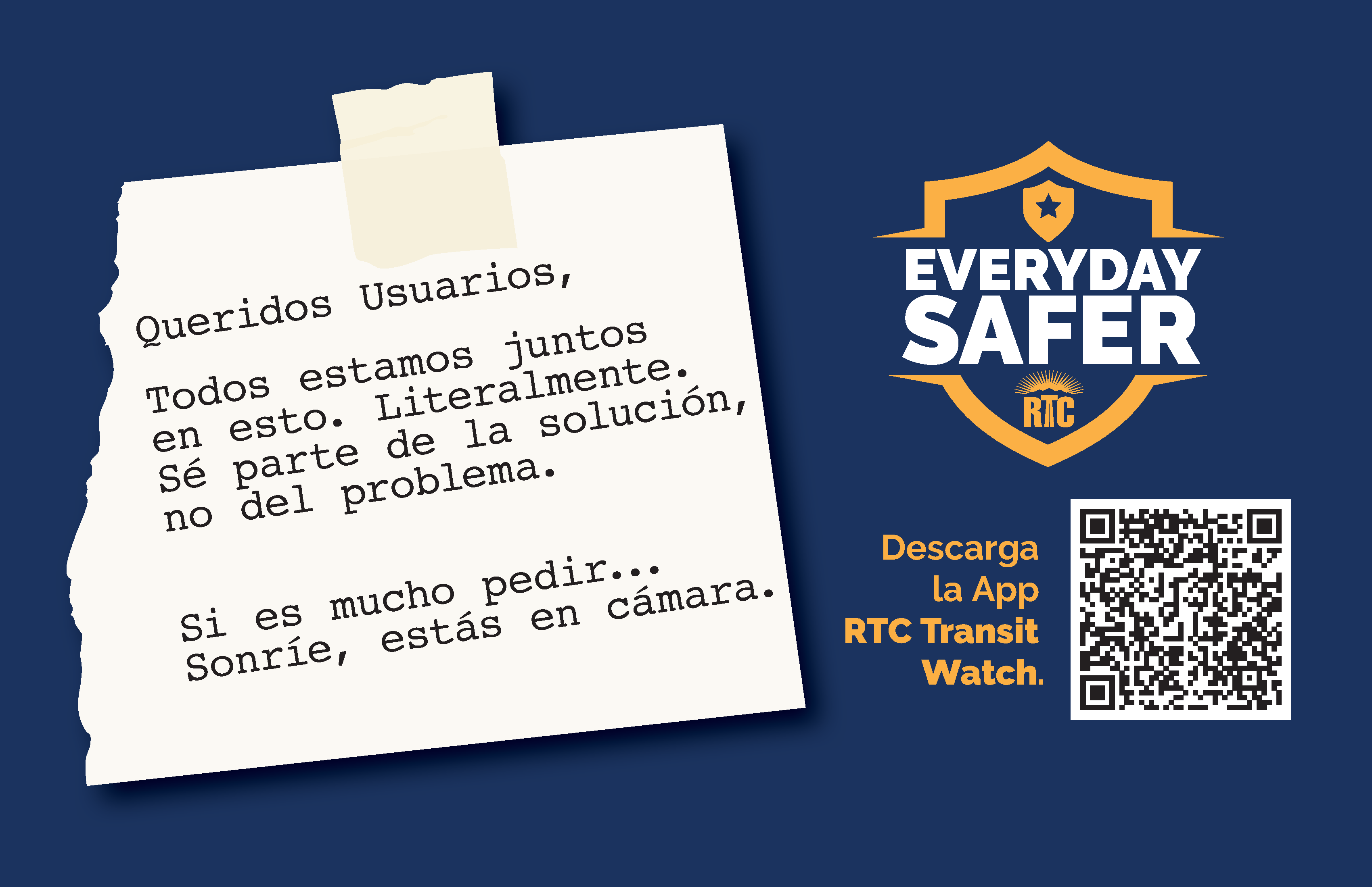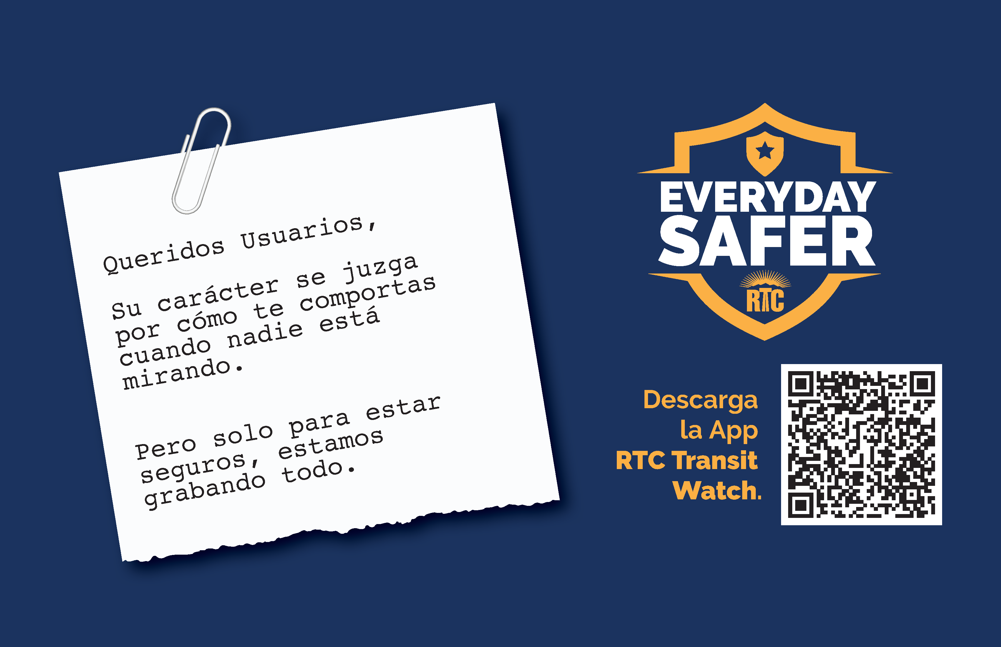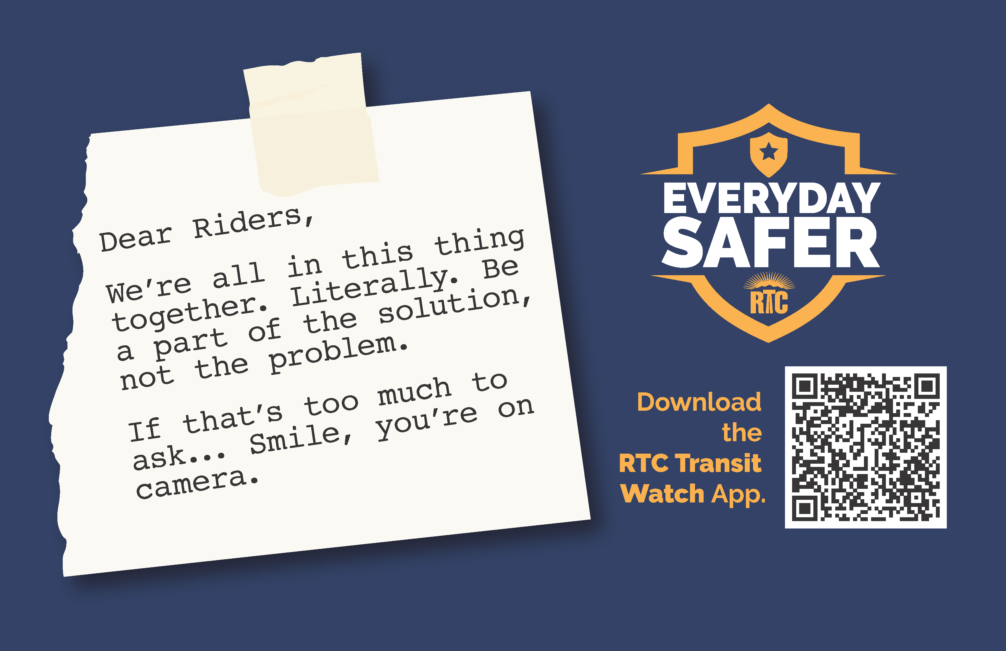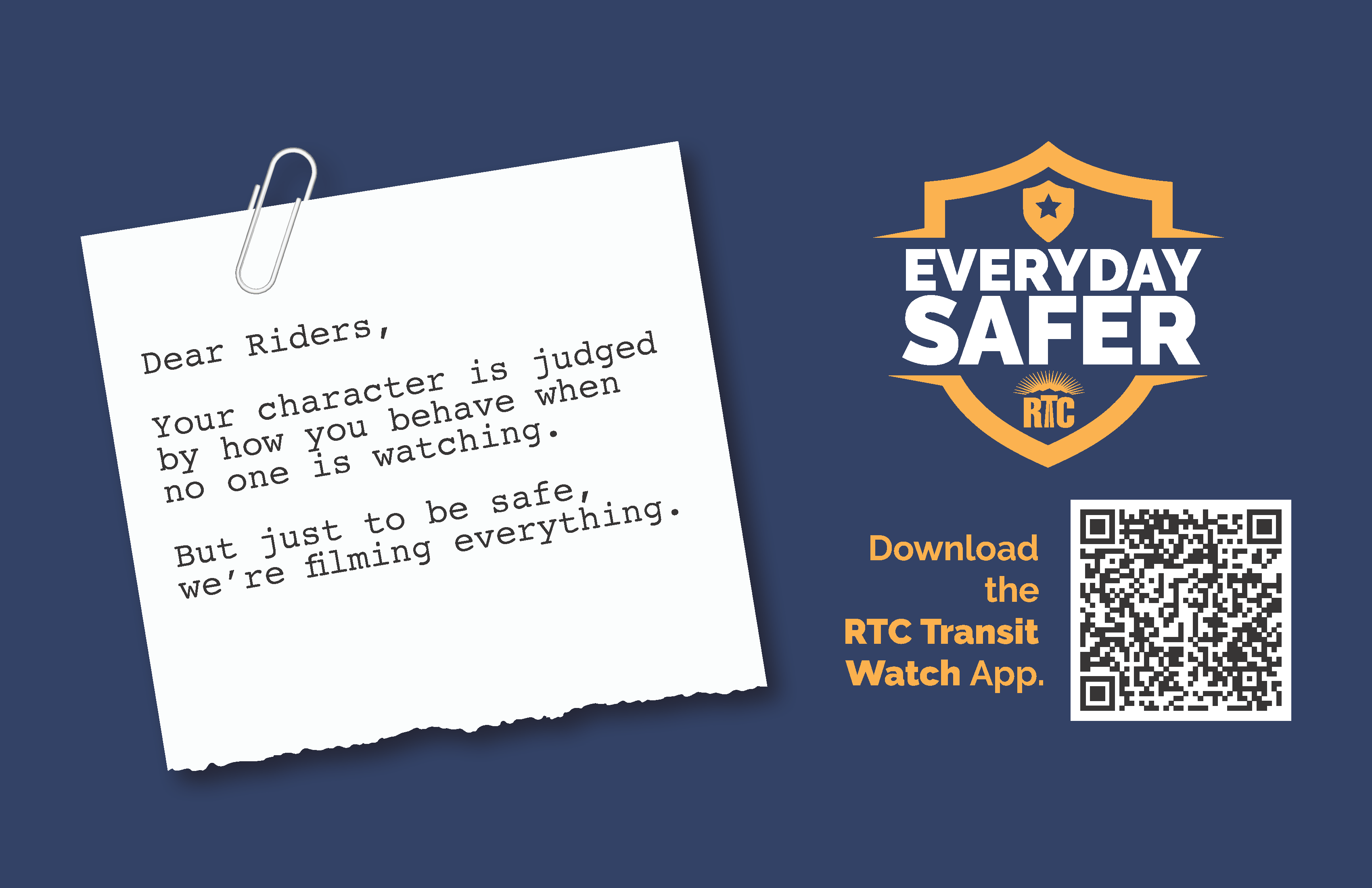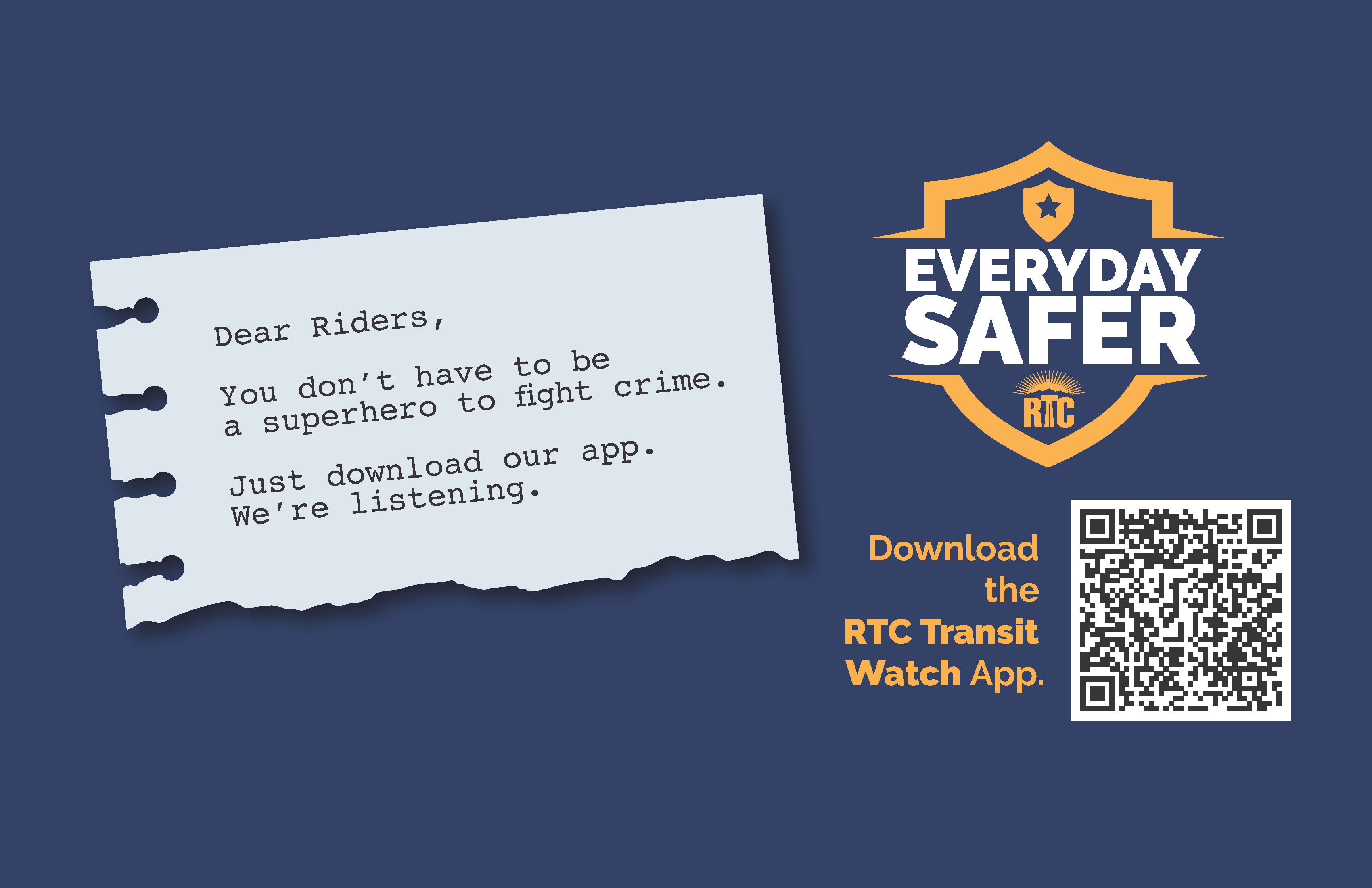 As public safety concerns have increased in recent years, the RTC has engaged with riders, drivers, security officers, and our community to develop a comprehensive, multi-prong approach to making transit safer in Southern Nevada. This ongoing approach to safety includes a focus on continuous security data analysis, investment in security personnel and technology, strategic bus stop placement and lighting, education campaigns and partnerships.