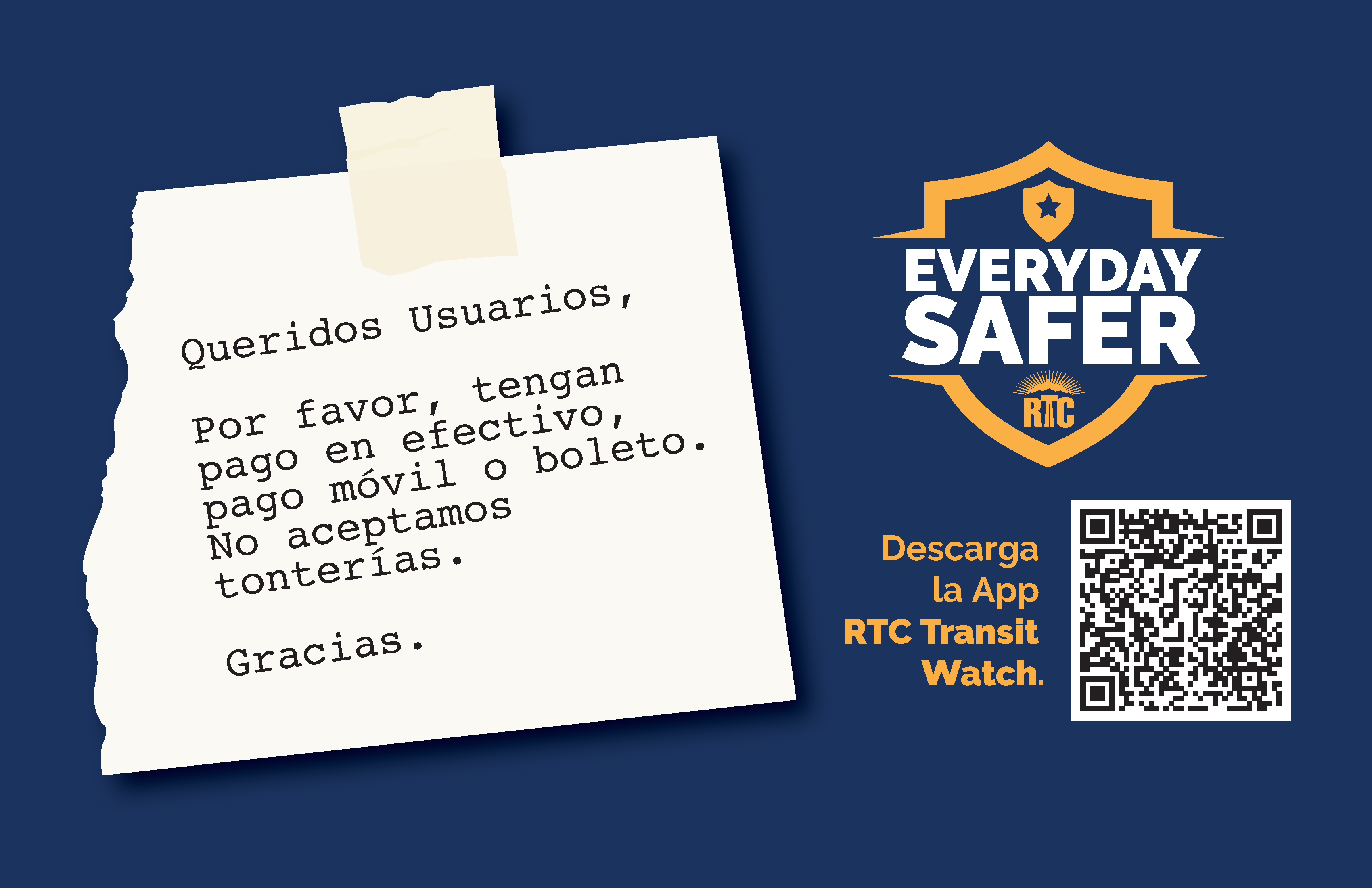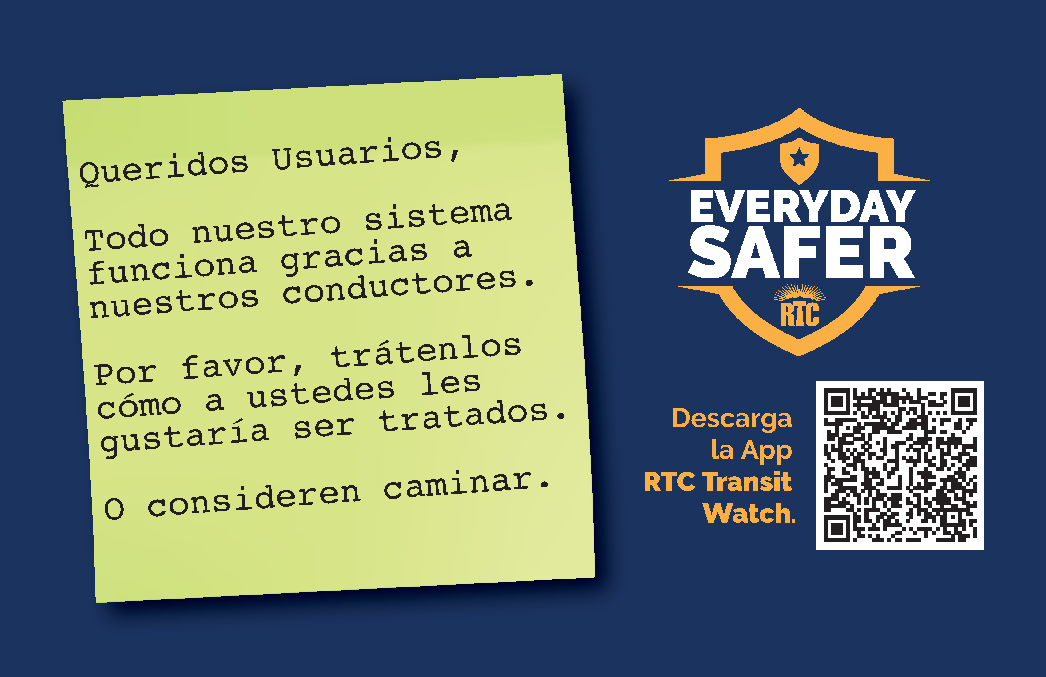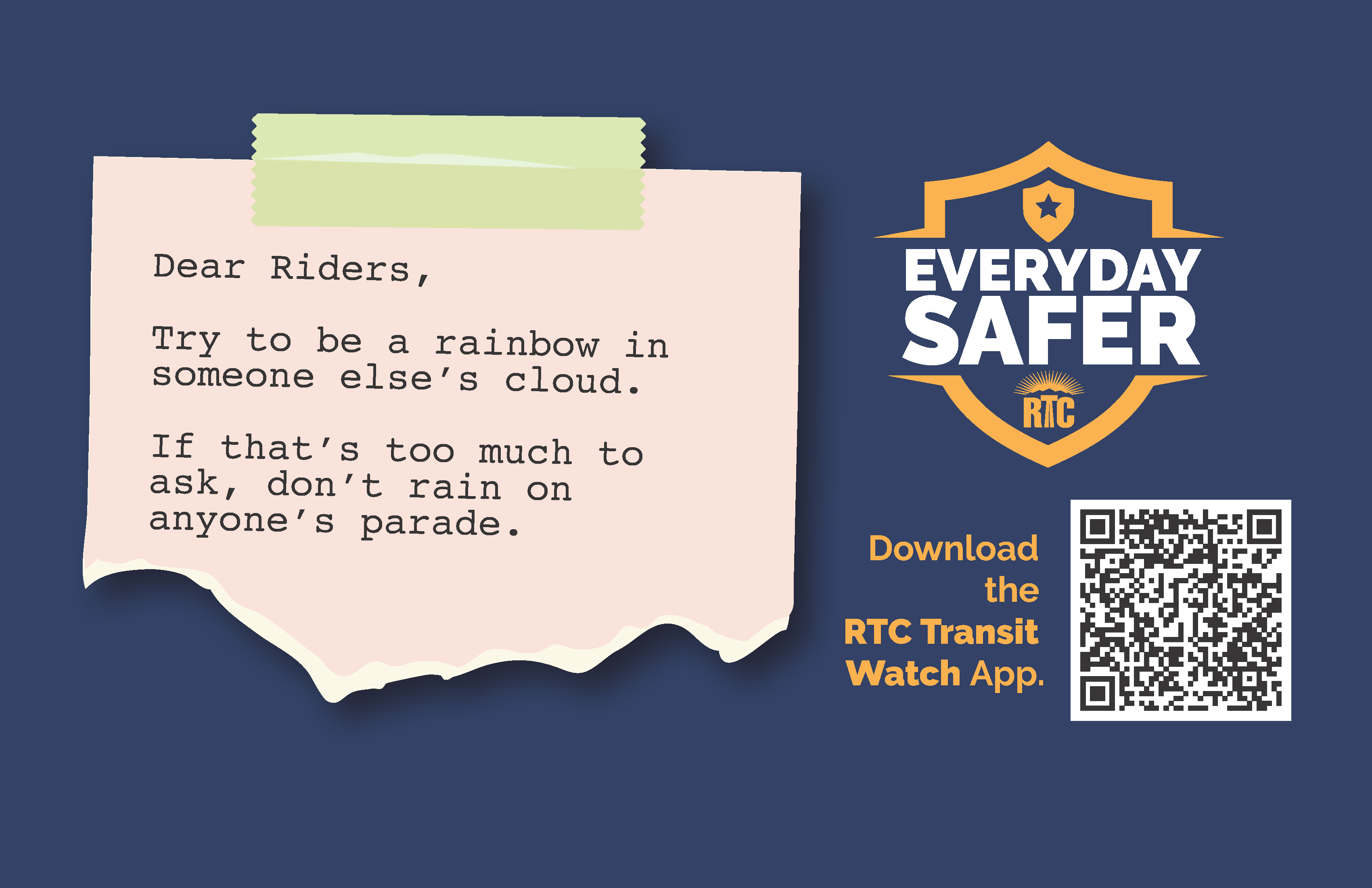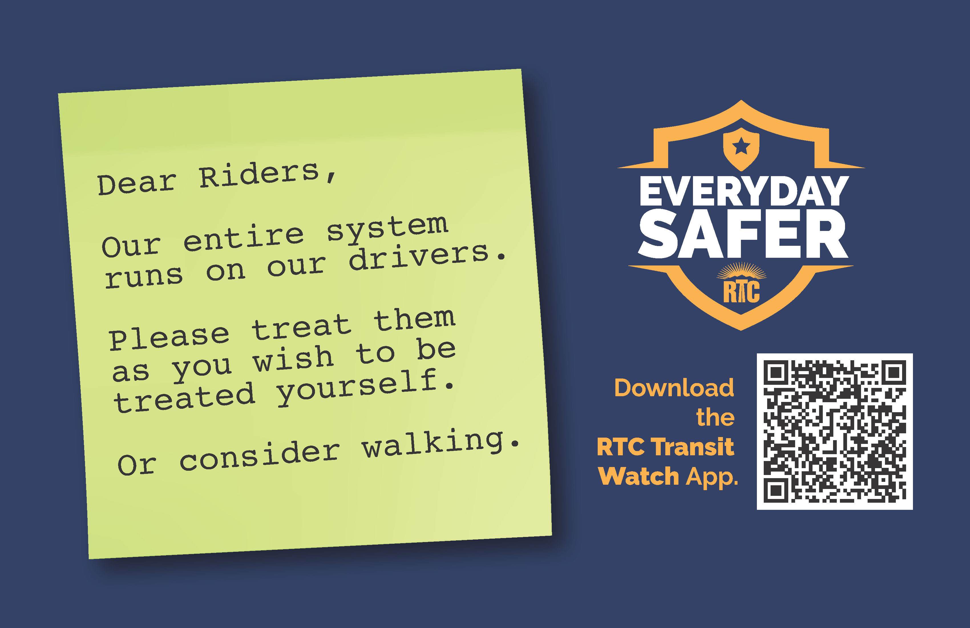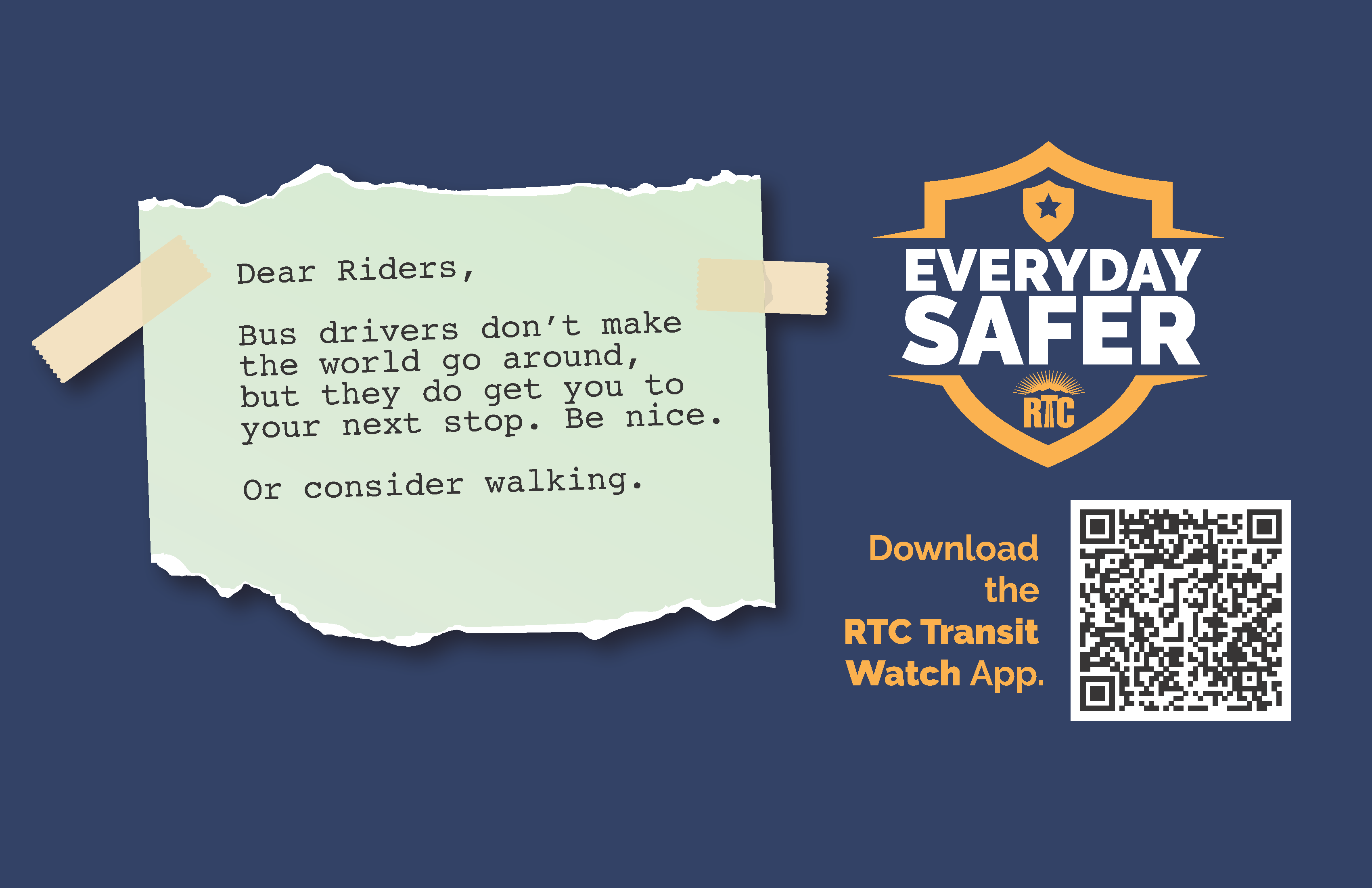 As public safety concerns have increased in recent years, the RTC has engaged with riders, drivers, security officers, and our community to develop a comprehensive, multi-prong approach to making transit safer in Southern Nevada. This ongoing approach to safety includes a focus on continuous security data analysis, investment in security personnel and technology, strategic bus stop placement and lighting, education campaigns and partnerships.