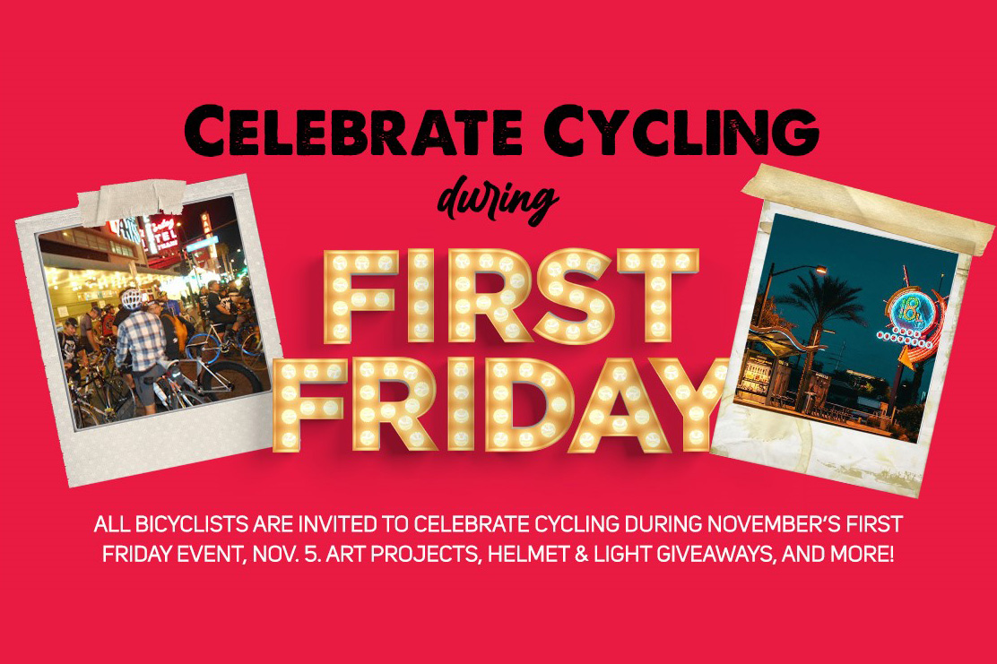 Calling cyclists of all ages! The Southern Nevada Bicycle Coalition (SNVBC) is celebrating cycling to kick off its “Let’s Get There Together” campaign during First Friday, Nov. 5, in the Downtown Las Vegas Arts District. Festivities for every cyclist include a social group ride, bicycle safety checks by Las Vegas Cyclery, giveaways, two bicycle-inspired public art projects, and much more! All activities, with the exception of the group ride, will take place at the Cycling Vendor Village located at 1208 S. Casino Center Boulevard near the corner of E. California Avenue and S. Main Street.
