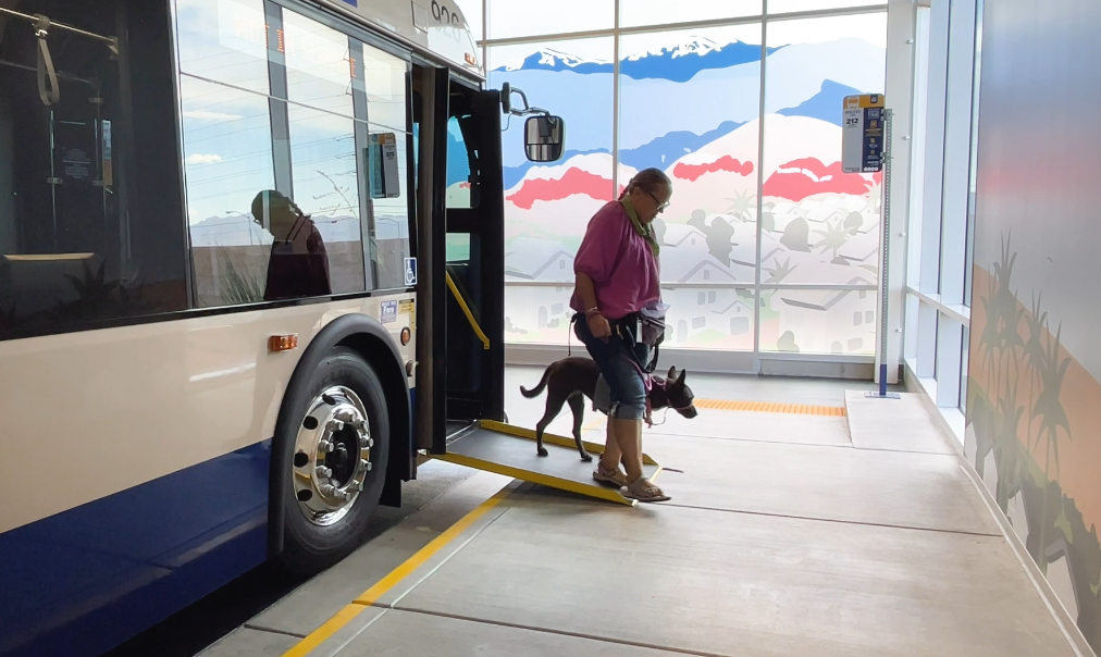 September is National Guide Dog Month and what better way to celebrate our four-legged companions than to highlight an RTC partner, Michael’s Angel Paws. We recently developed a partnership with Michael’s Angel Paws to train assistance dogs at the RTC’s Mobility Training Center on how to navigate public transportation with their owners.