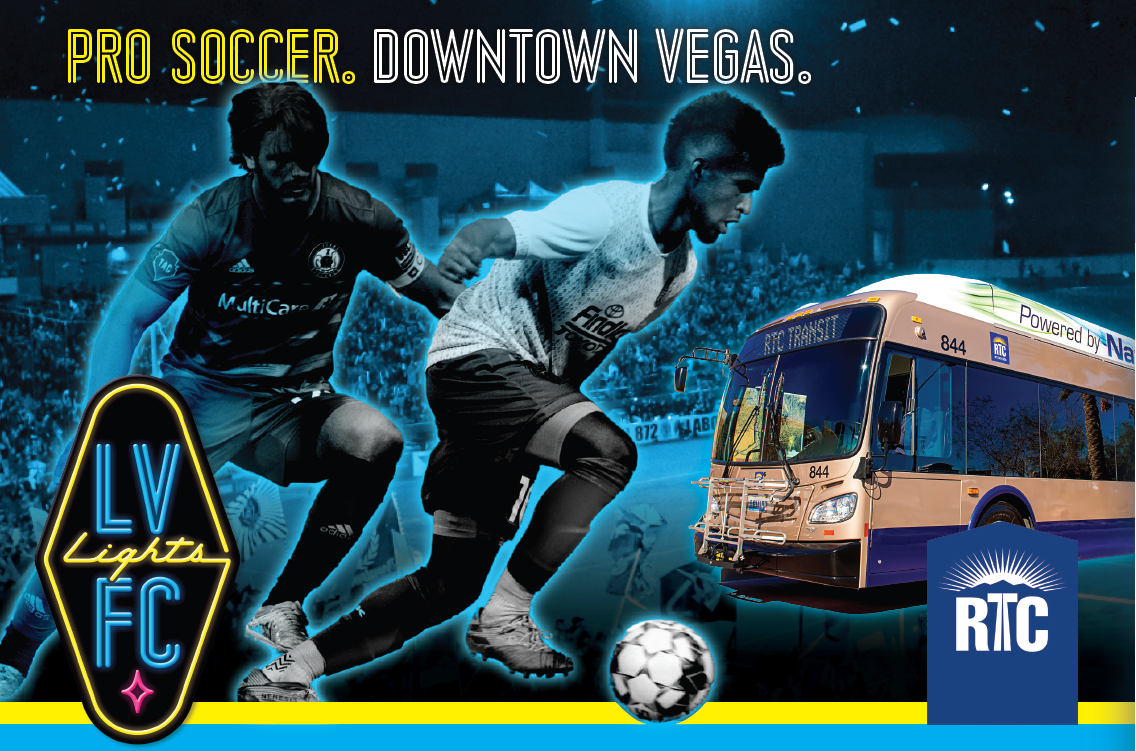 Las Vegas, NV — The Las Vegas Lights FC professional soccer and the Regional Transportation Commission of Southern Nevada (RTC) are partnering up to provide discounted match tickets to transit riders during the 2023 season. All residents who ride transit to Cashman Field for Lights FC matches will receive a half-price match ticket.