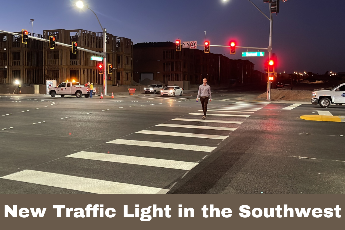This month, during National Pedestrian Safety Month, Clark County Commissioner and RTC Board Chairman Justin Jones activated newly installed traffic lights in the southwest part of the valley. Joined by Southern Hills Hospital staff, Commissioner Jones celebrated the new signal at Sunset Road and Quarterhorse Lane, just west of I-215 in the Southwest.