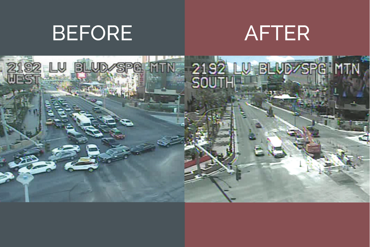 With Phase 1 of Nevada’s Roadmap to Recovery beginning Saturday, May 9, traffic has increased by approximately 9 percent on Clark County freeways during the third week of May since April. Phase 2 is set to begin Friday, June 4. As businesses begin to reopen and more and more people venture out, the RTC’s traffic management team will continue to monitor the network and adjust operations as necessary to ensure the continued safe flow of traffic.